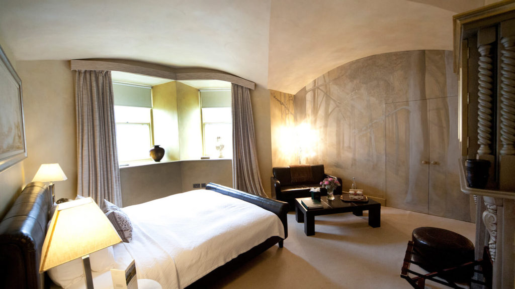 The room is designed to appeal to the senses – taste the sweet Estate water; delight in the sensuous cotton sheets; enjoy the divine nudes adorning the walls and inhale the sweet relaxation oils displayed in the room.